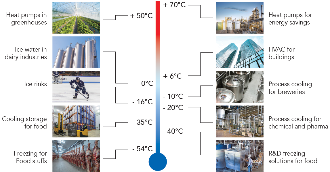 More than just a low temperature is necessary for the optimised storage of products such as fresh meat, dairy products, beverages, flowers and ice cream. Refrigeration and freezing systems for the food industry are designed to meet the highest hygienic standards for processing and storage.